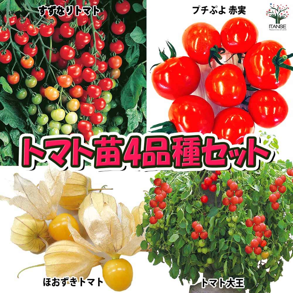 人気のトマト苗4品種セット 品種:トマト大王・すずなりトマト・プチぷよⅡ 赤実・ほおずきトマト(ゴールデンベリー) 【野菜苗 9c...