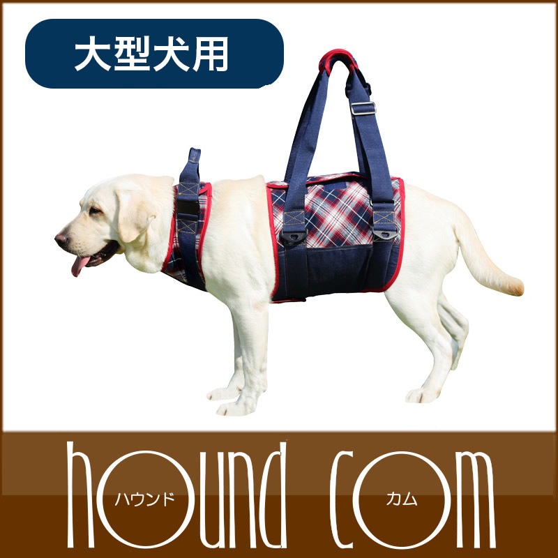 歩行補助ハーネス LaLaWalk大型犬用 チェックデニム ハーネス 犬 ハーネス ドッグ