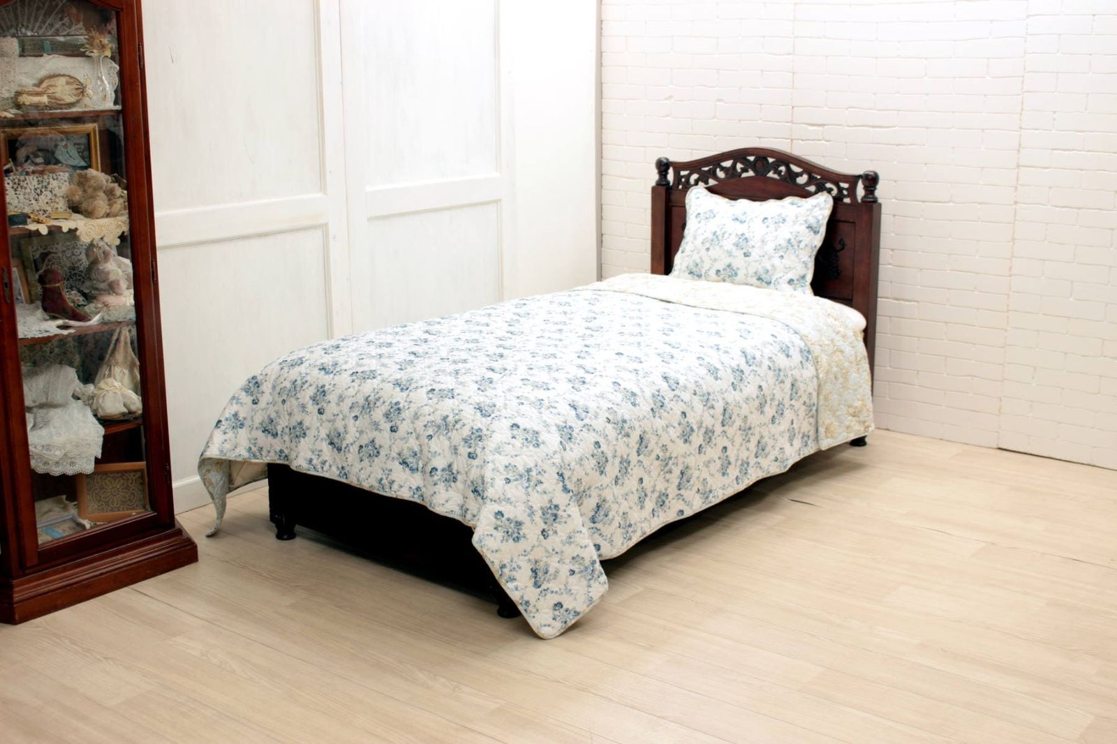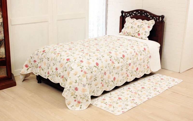 【SALE】コットンキルト マルチカバー 約200×250cm [flower-flag]
