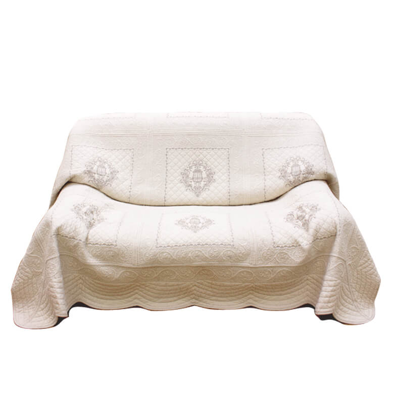 刺繍入りコットンキルト マルチカバー 約135×195cm [romanice]
