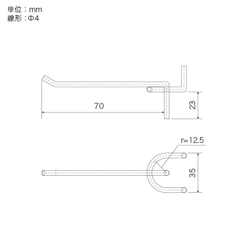 有孔ボード バーフック 70 P30 【1個】八幡ねじ YAHATA