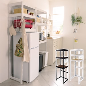 メタル&ウッドラックシリーズ ペール上・冷蔵庫上・ランドリー上ラック(幅620mm)