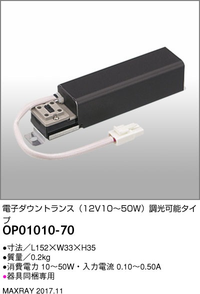 <販売終了品・代替推奨品あります>マックスレイ(MAXRAY)OP01010-70 電子ダウントランス(12V10~50W)調光可...