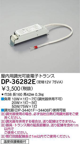 <販売終了・代替推奨品あります>大光 DP-36282E 電子ダウントランス(12V10~75W)調光可能タイプ