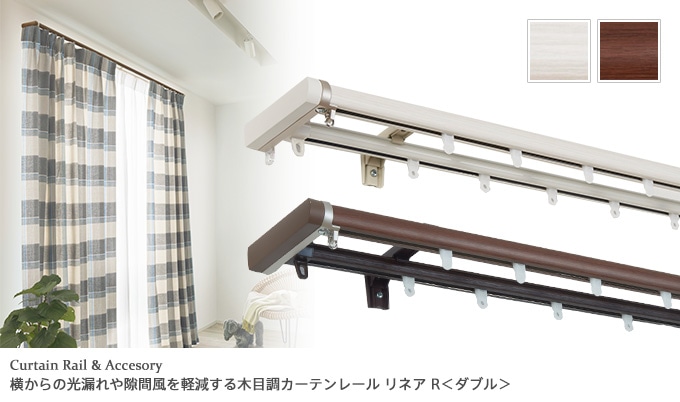 【2.0mダブルセット】TOSO 伸縮式カーテンレール 静音ランナー採用省エネ木目調カーテンレール「リネアR」