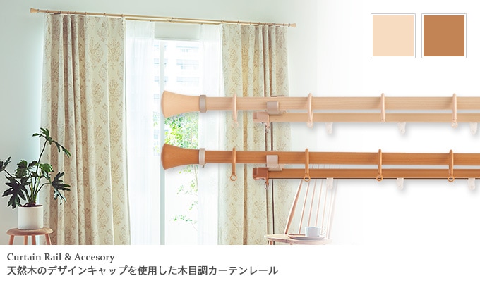 【2.0mダブルセット】TOSO 伸縮式カーテンレール 天然木のデザインキャップの木目調装飾レール「ミディオ」