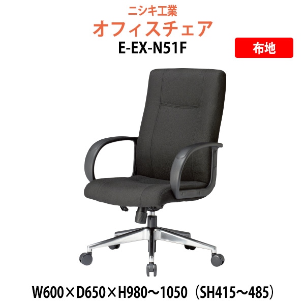 事務椅子 肘付き E-EX-N51F 幅600x奥行650x高さ980~1050mm 座面高415~485mm 肘掛高さ618~6...