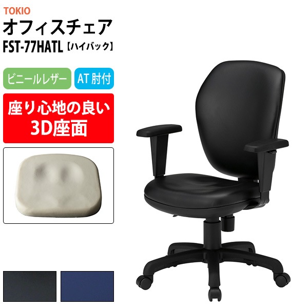 事務椅子 FST-77HATL 幅600x奥行630x高さ900~990mm 座面高425~515mm ビニールレザー AT肘付 ...