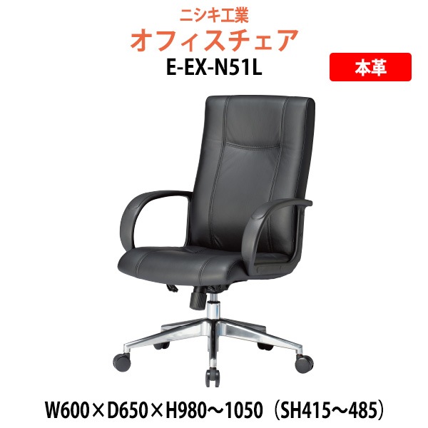 事務椅子 肘付き E-EX-N51L 幅600x奥行650x高さ980~1050mm 座面高415~485mm 肘掛高さ618~6...