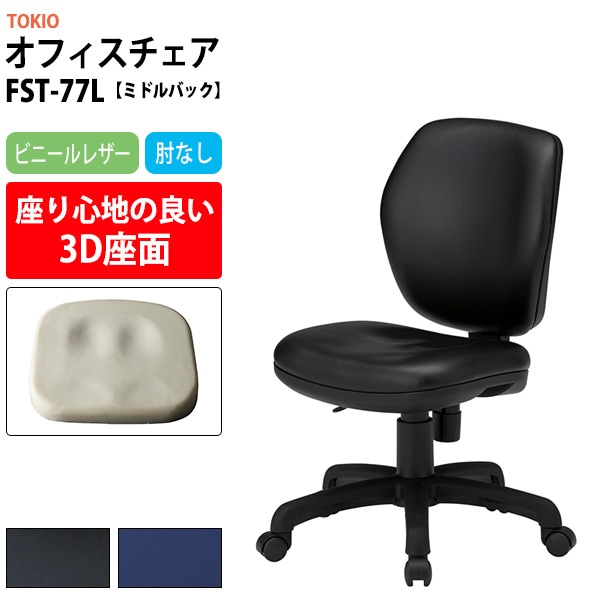 事務椅子 FST-77L 幅578x奥行620x高さ830~920mm 座面高425~515mm ビニールレザー 肘なし ミドルバ...