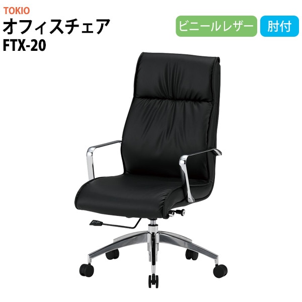 事務椅子 肘付き FTX-20 幅650x奥行680x高さ1020~1100 座面高445~525mm ビニールレザー 肘付 オフ...
