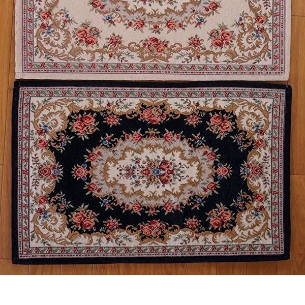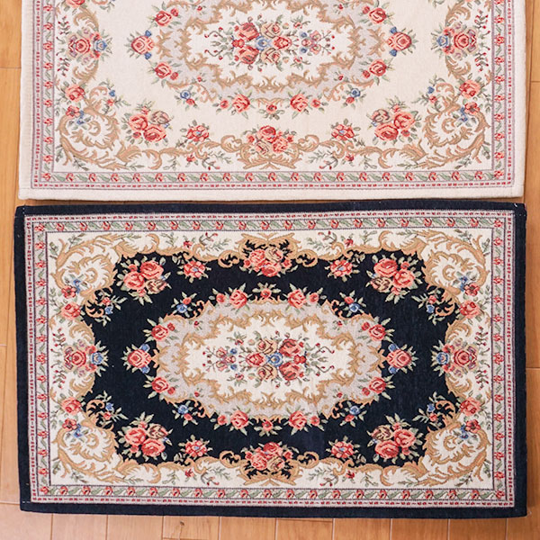 シェニール織ローズマット60*90cm:ネイビー【裏ゴム付き】