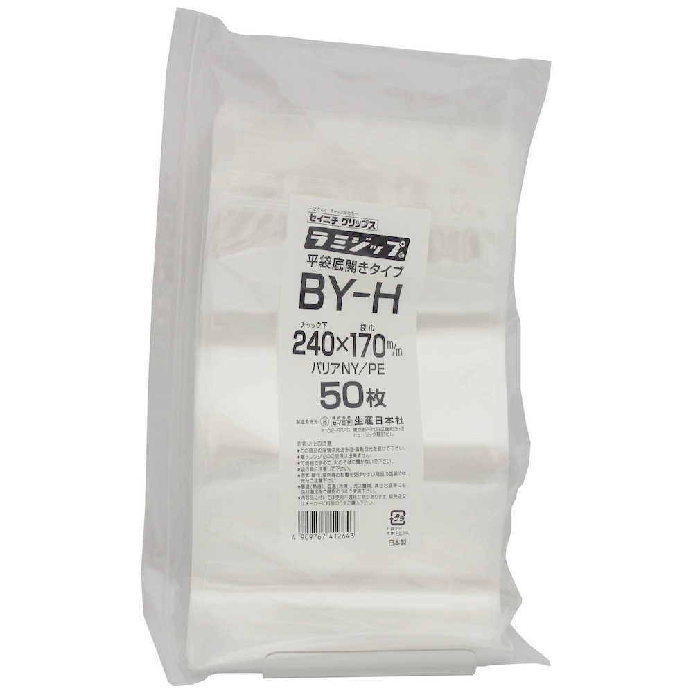 ラミジップ BY-H 底開き平袋バリアタイプ 240×170mm 50枚×3袋【専用倉庫直送】