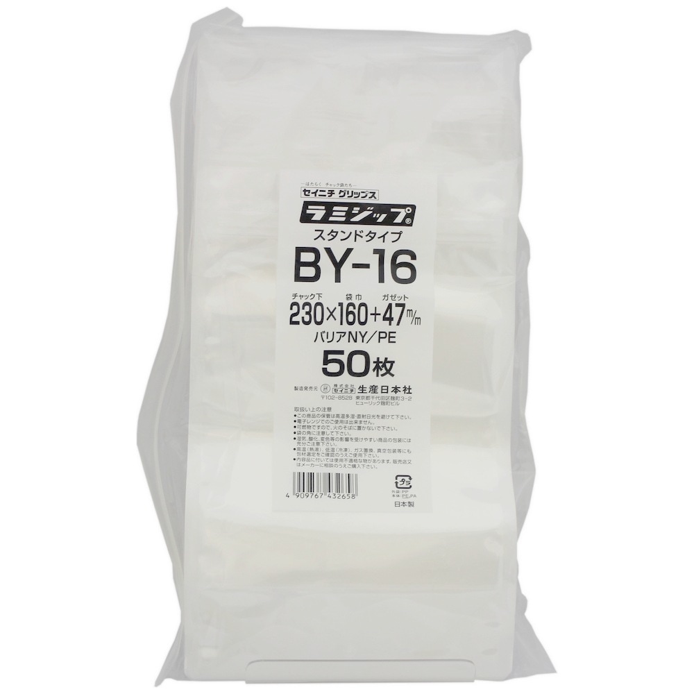 ラミジップ BY-16 バリアスタンドタイプ 230×160+47mm 50枚×2袋【専用倉庫直送】