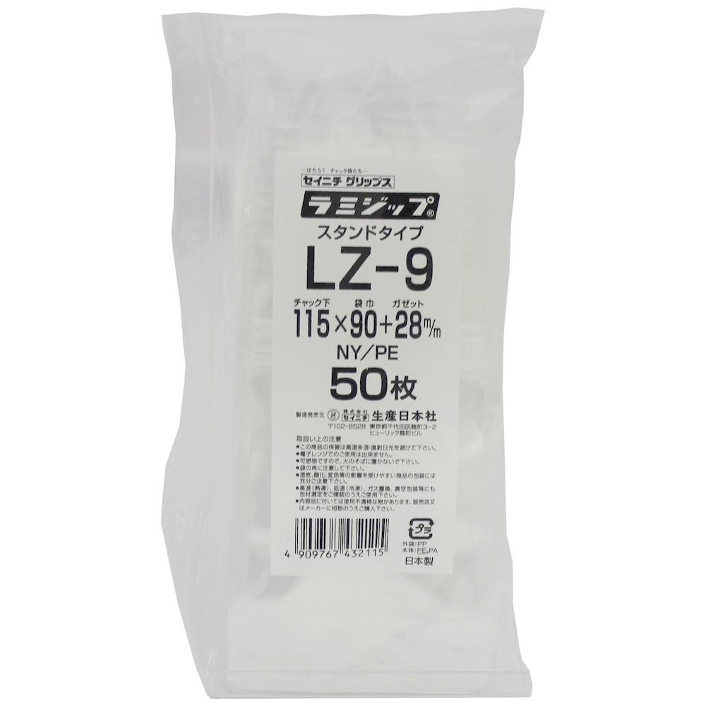 ラミジップ スタンドタイプ LZ-9 115×90+28mm 50枚×5袋【専用倉庫直送】
