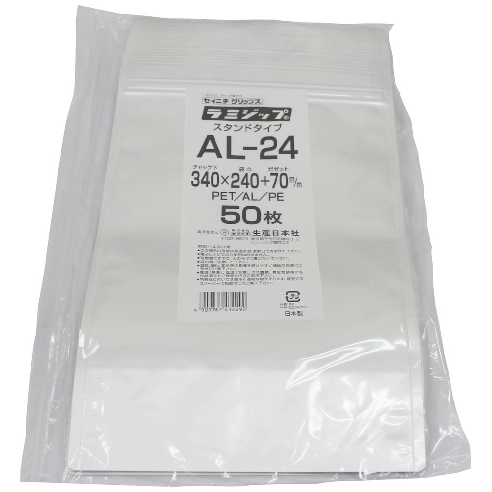 ラミジップ AL-24 スタンドタイプ アルミ 340×240+70mm 50枚×8袋●ケース販売お得用【メーカー直送】