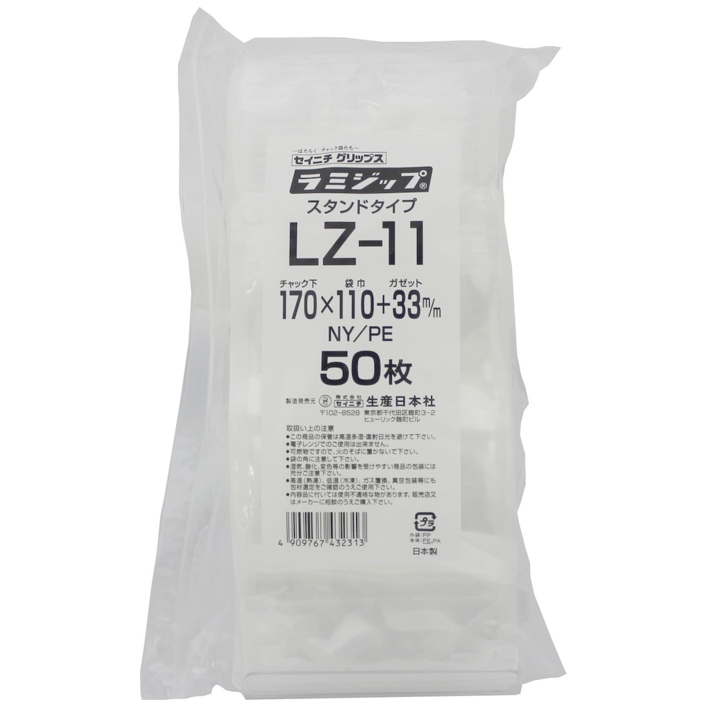ラミジップ スタンドタイプ LZ-11 170×110+33mm 50枚×26袋●ケース販売お得用【メーカー直送】