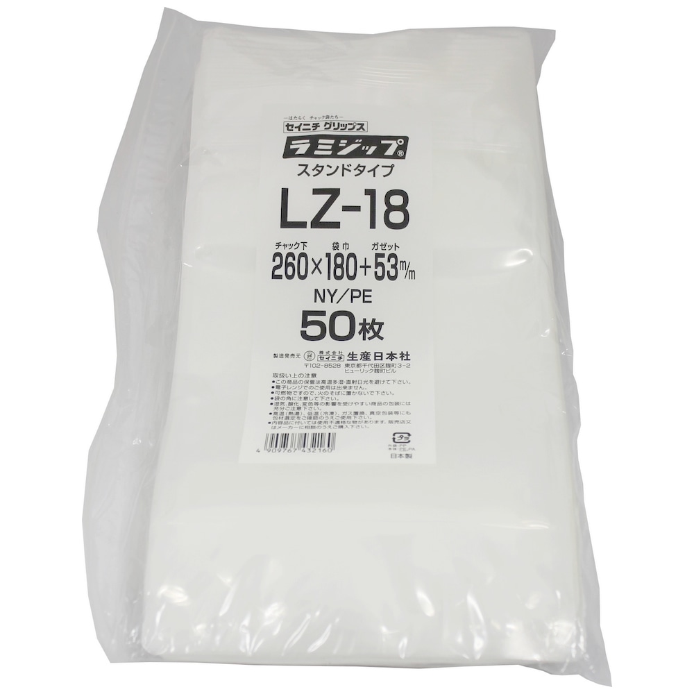 ラミジップ スタンドタイプ LZ-18 260×180+53mm 50枚×14袋●ケース販売お得用【メーカー直送】