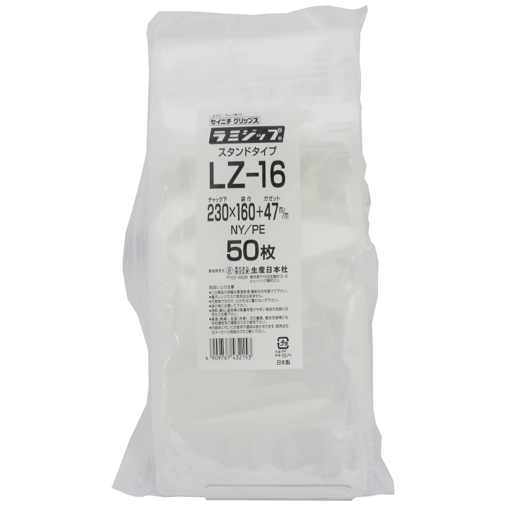 ラミジップ スタンドタイプ LZ-16 230×160+47mm 50枚×16袋●ケース販売お得用【メーカー直送】