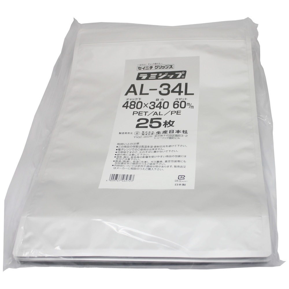 ラミジップ AL-34L スタンドタイプ アルミ 480×340+60mm 25枚×12袋●ケース販売お得用【メーカー直送】