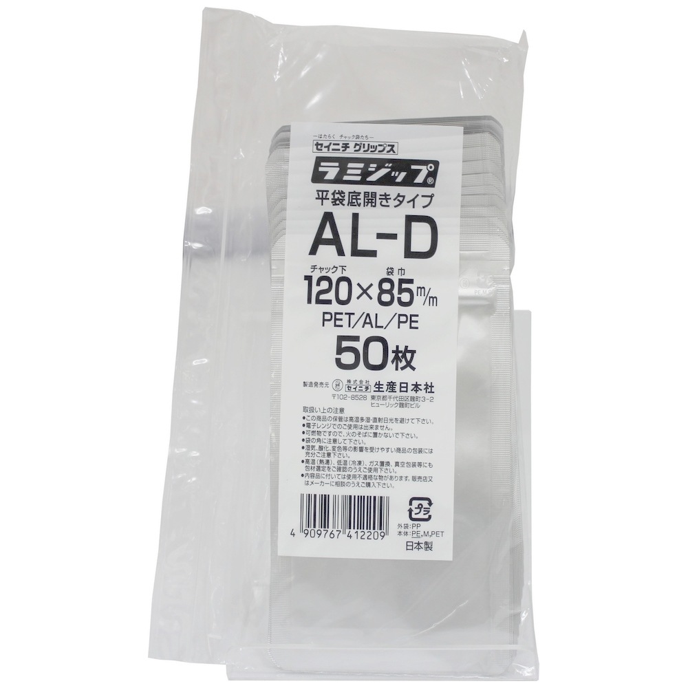 ラミジップ AL-D 底開き平袋タイプ アルミ 120×85mm 50枚×70袋●ケース販売お得用【メーカー直送】