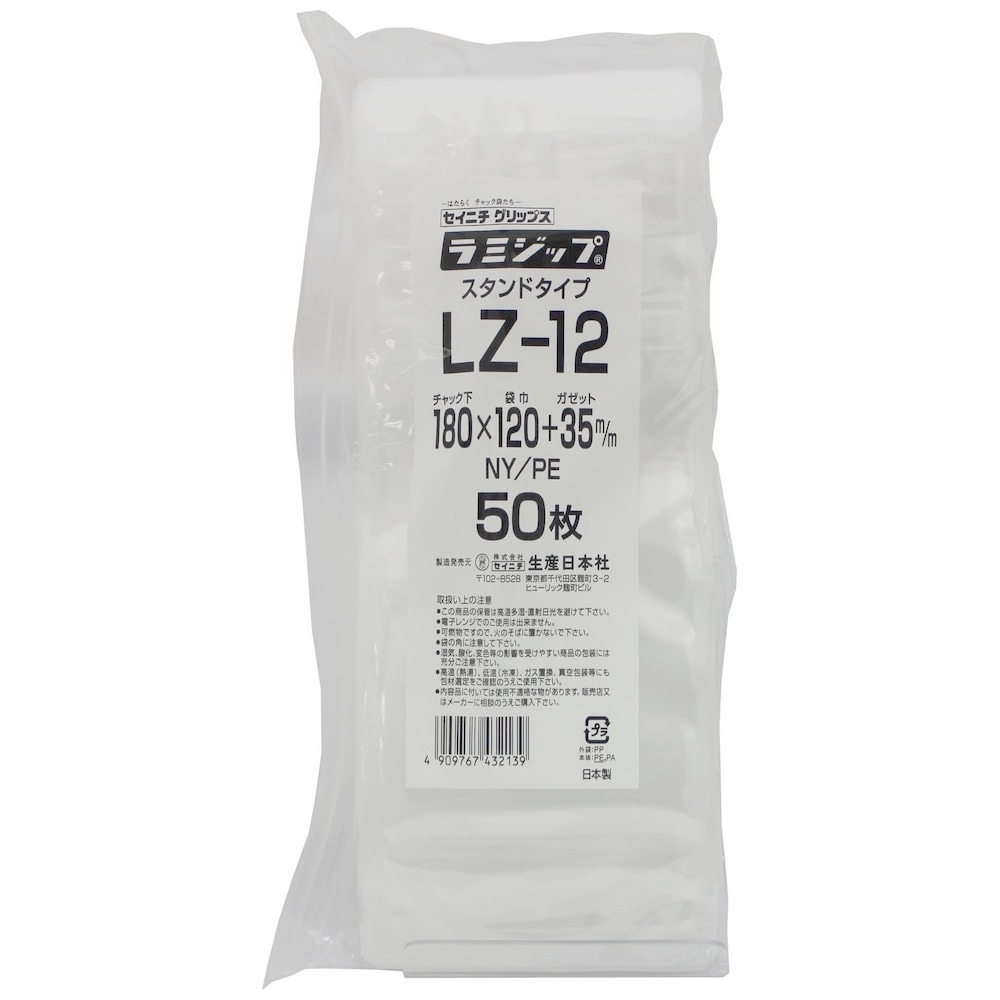 ラミジップ スタンドタイプ LZ-12 180×120+35mm 50枚×24袋●ケース販売お得用【メーカー直送】