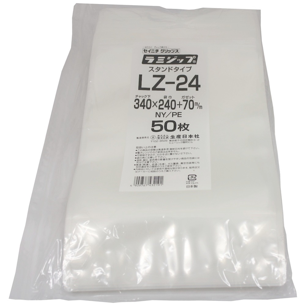 ラミジップ スタンドタイプ LZ-24 340×240+70mm 50枚×8袋●ケース販売お得用【メーカー直送】