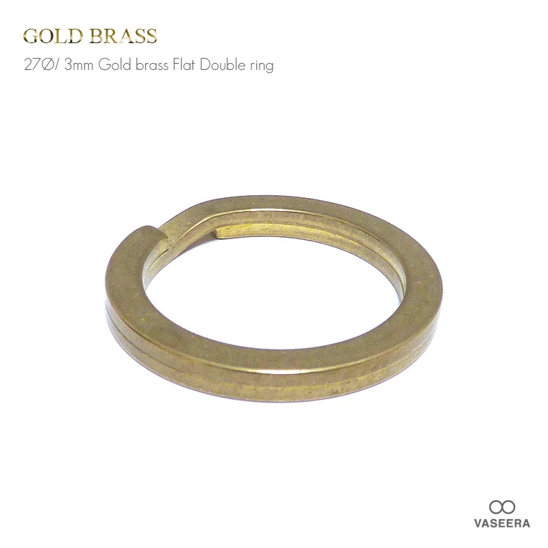 ゴールドブラス(真鍮) 27mm フラット/平型二重カン パーツ /ダブルリング/二重キーリング 【キーホルダー/パーツ 】
