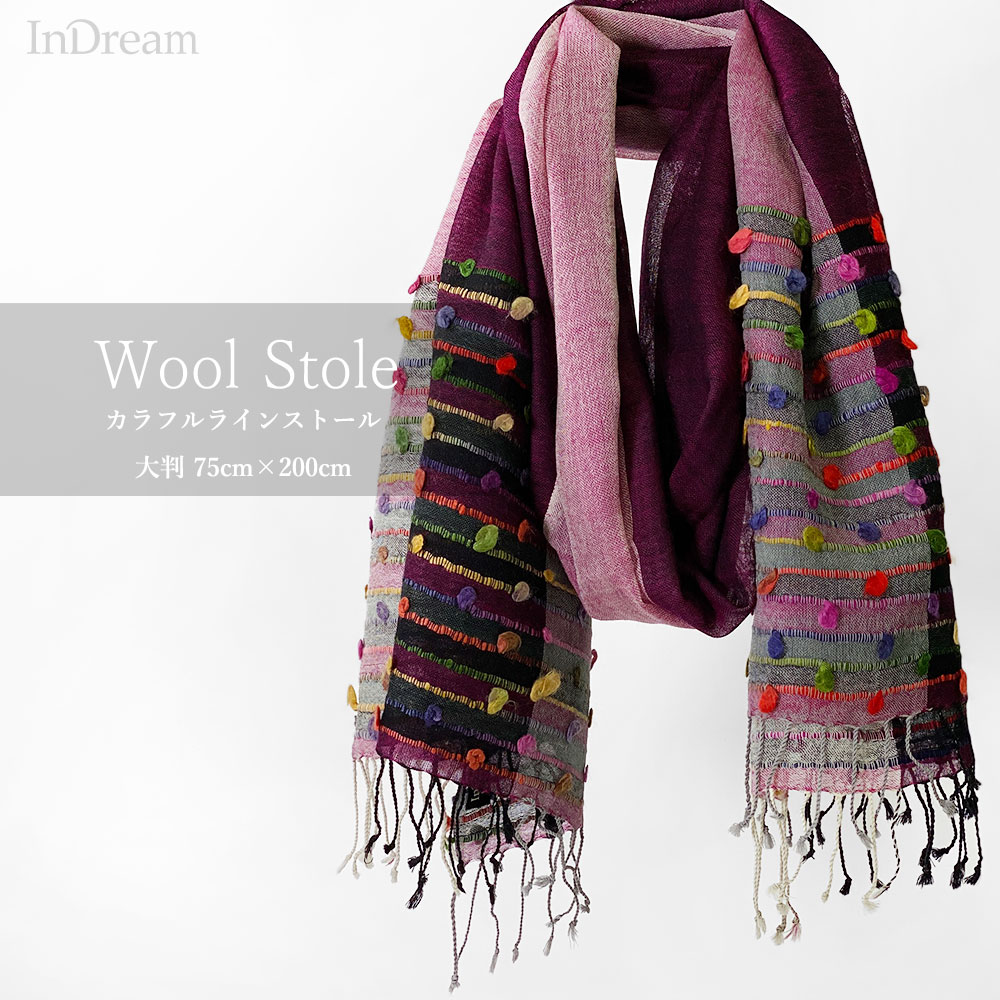 InDream カラフルラインストール 紫(パープル) ウール ストール 大判 お土産 お礼 誕生日 プレゼント バレンタイン ギ...