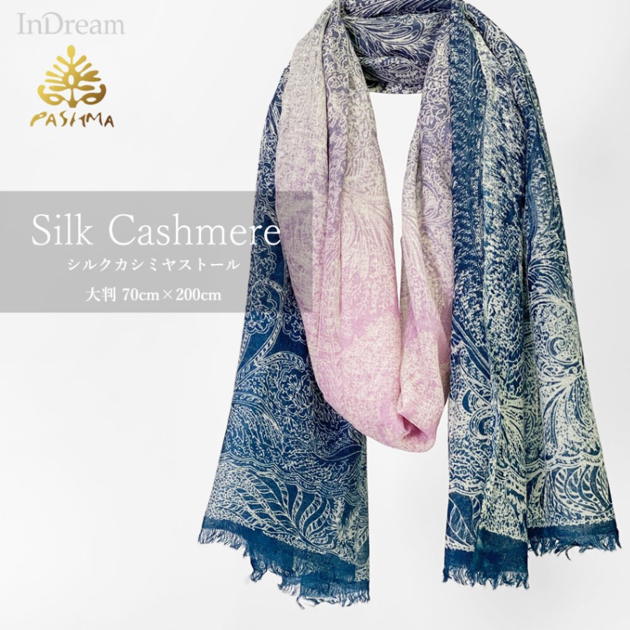 PASHMA パシュマ ストール シルクカシミヤ プリント マフラ― ネイビー ピンク クリスマス ギフト おしゃれ 誕生日 プレ...