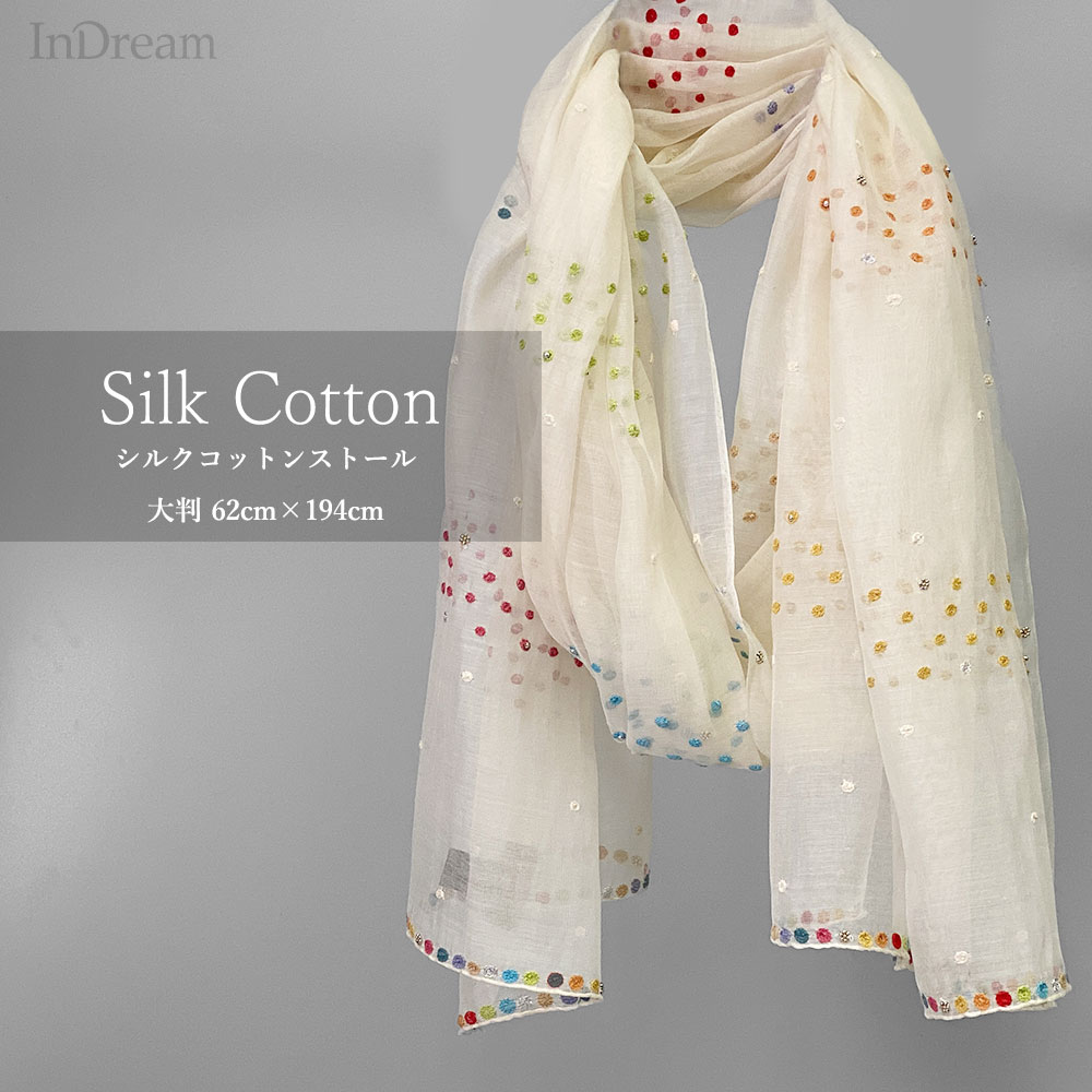 InDream シルクコットン刺繍ストール アイボリー ホワイト 結婚式 ストール 大判 パーティー 春 夏 秋 誕生日 プレゼ...