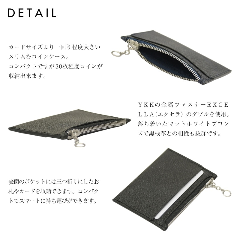 黒桟革 藍染め コインケース 小銭入れ ジップ エクセラ ファスナー IDケース カードケース パスケース レザー 漆塗り 高級 ...