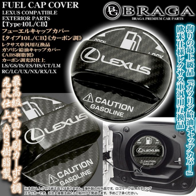 [タイプ10L/CB]レクサス互換品ロゴマークステッカー付 給油 フューエル キャップ カバー[ABS樹脂製/カーボン調/光沢仕上...