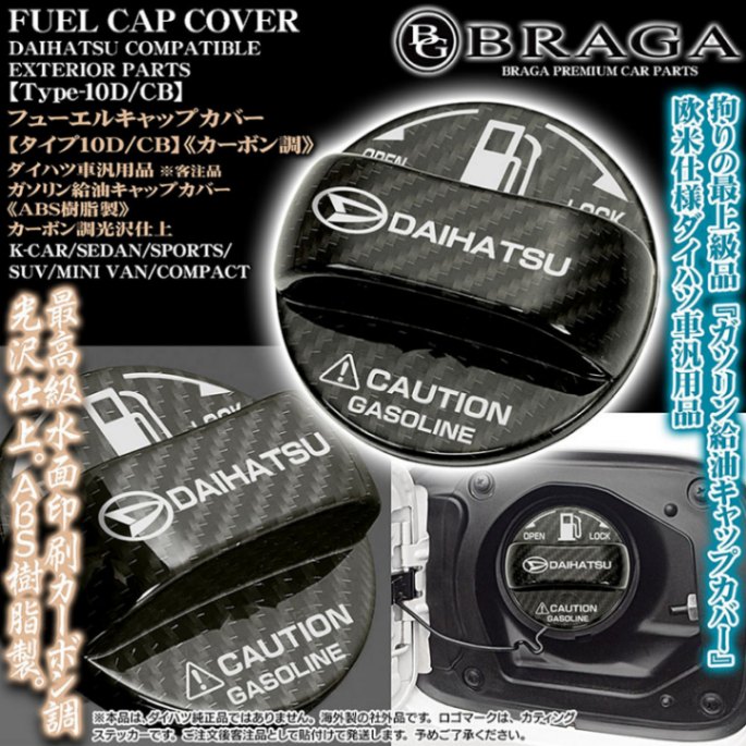キャスト/ミラ/コペン[タイプ10D/CB]ダイハツ ステッカー付 給油 フューエル キャップ カバー[ABS製/カーボン調]客注...
