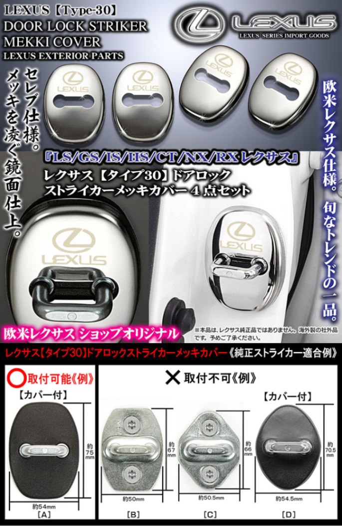 《限定品》レクサス車互換品ドアロック ストライカー メッキカバー4点セット【ゴールド/レクサス ロゴマーク付/客注品】タイプ30/...
