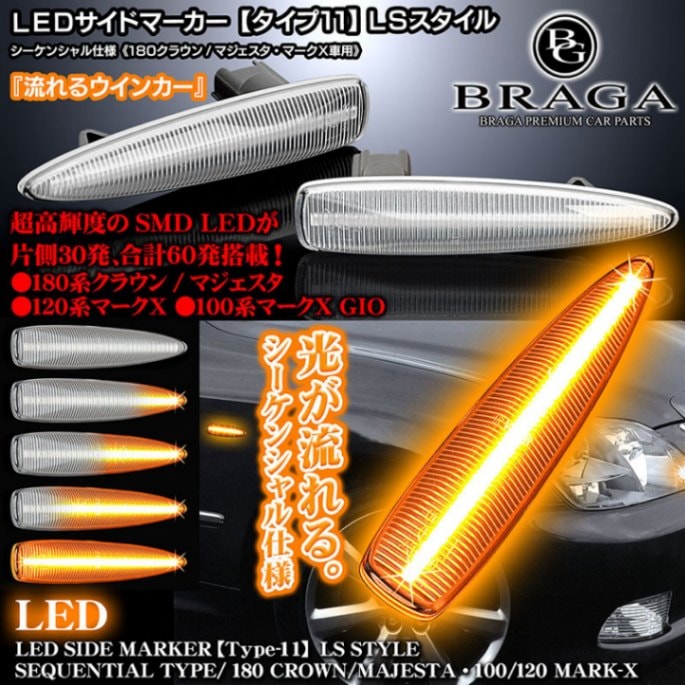 【タイプ11】流れるLEDサイドマーカー/LSスタイル《180クラウン/マジェスタ・100/120マークX》シーケンシャル ウイン...