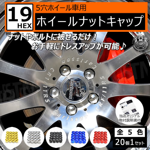 ホイール ナット キャップ 19HEX 5穴 ホイール 対応 20個セット ゴールドメッキ シルバーメッキ グロスブラック レッド...