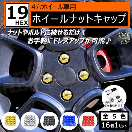 ホイール ナット キャップ 19HEX 4穴 ホイール 対応 16個セット ゴールドメッキ シルバーメッキ グロスブラック レッド...