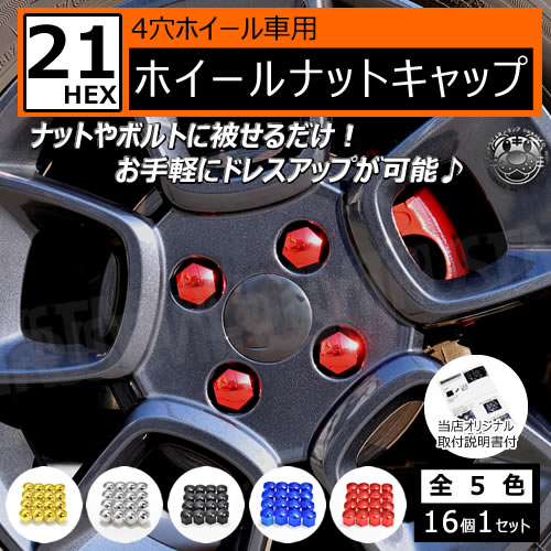 ホイール ナット キャップ 21HEX 4穴 ホイール 対応 16個セット ゴールドメッキ シルバーメッキ グロスブラック レッド...