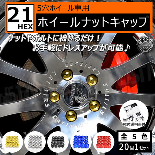 ホイール ナット キャップ 21HEX 5穴 ホイール 対応 20個セット ゴールドメッキ シルバーメッキ グロスブラック レッド...