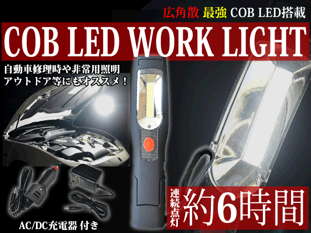 COB LED ワークライト/AC充電器・シガー充電器セット 連続点灯時間6時間 作業灯 自動車整備に アウトドア 非常灯 夜釣り...