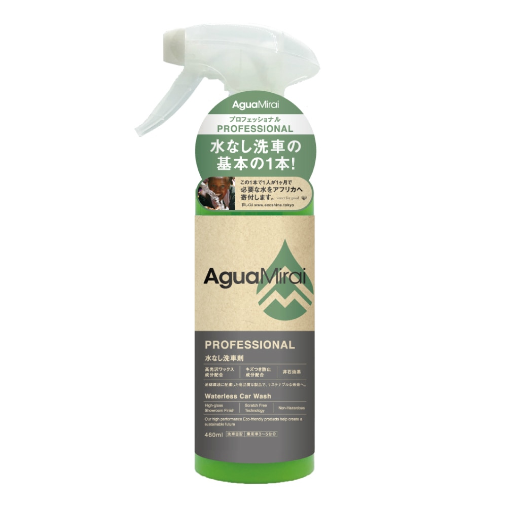 【ボトル(460ml)】 水なし洗車+高光沢WAX 『AguaMirai PROFESSIONAL 460ml』 (乗用車3~5台...
