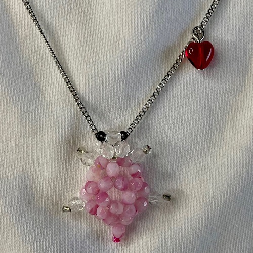 クリスタルガラス/ネックレス/ピンク/ボタンカット/49cm