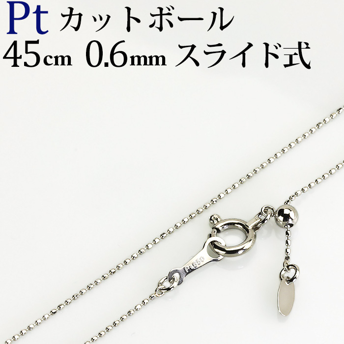Pt カットボール チェーン(45cm、幅0.6mm、スライドAJ)