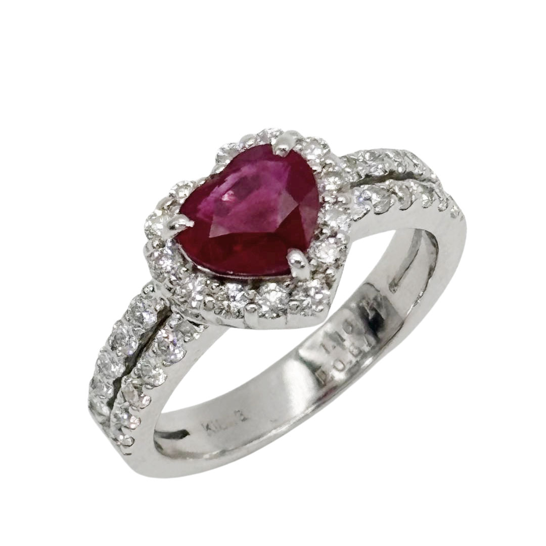 Ponte Vecchio ポンテヴェキオ ハートリング 指輪 K18WG ルビー1.16ct ダイヤ0.67ct 5.3g 約1...