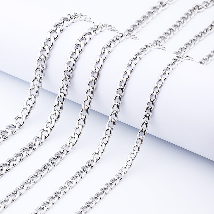 ステンレス製 フィガロチェーン 切り売り 幅3mm~7.4mm 鏡面仕上げ ネックレス用 チェーン 金属アレルギー