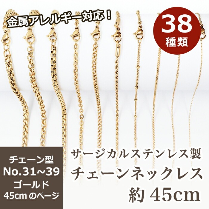 アレルギー対応 ステンレス サージカルステンレス製 ネックレスチェーン 金具付【約45cm ゴールド】No.31~39のページ ...