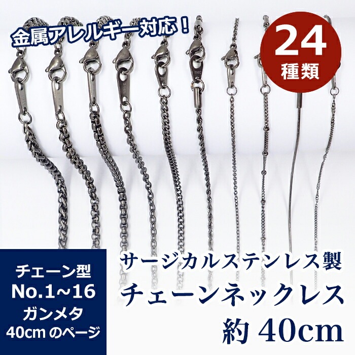 アレルギー対応 ステンレス サージカルステンレス製 ネックレスチェーン 金具付【約40cm ガンメタ】No.17~30のページ ...