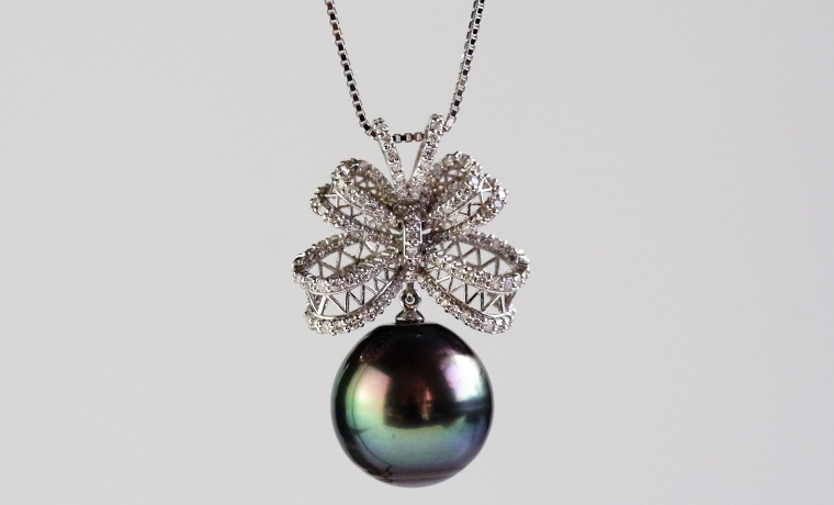 K18WGタヒチ真珠ペンダント【大きさ12㎜】<G3926>