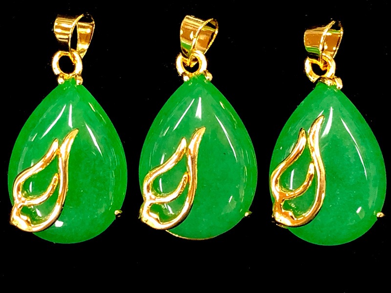 限定入荷!★繁栄・成功・健康の石として幅広い年代に定番人気★天然石/青翡翠(ひすい・ジェイド・jade)ペンダントトップ/ゴールド...